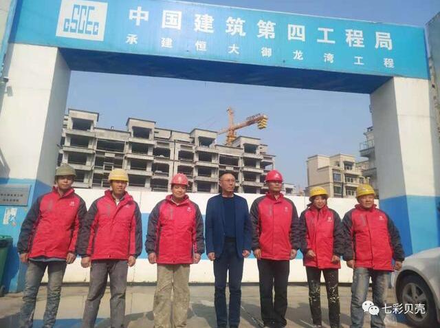 七彩貝殼香港集團無限公司董事長郭潮連先生率領公司管理部門人員前往陜西西安工地給外地的機噴聯盟的成員送暖和。